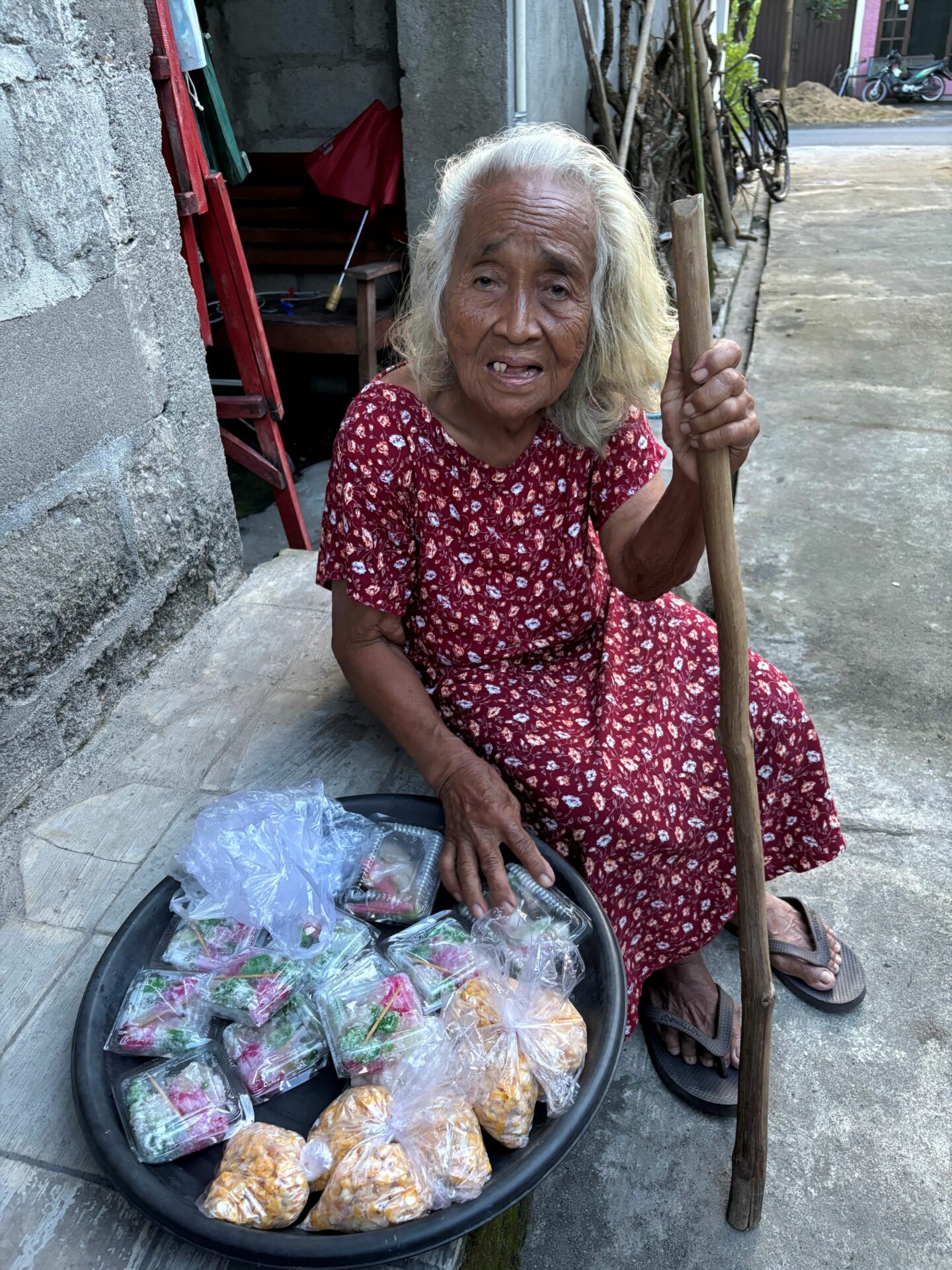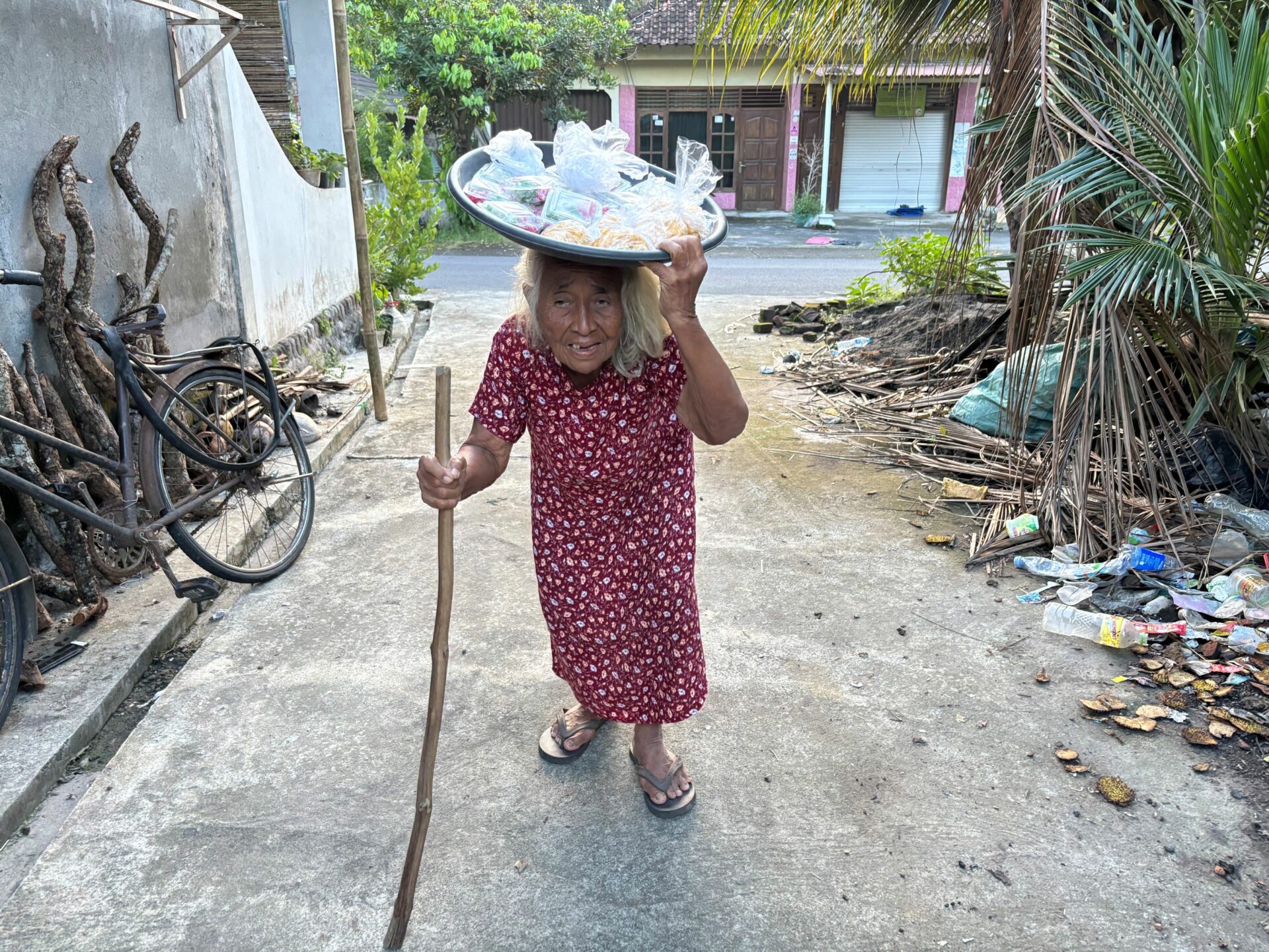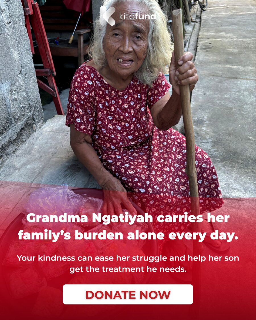 She is already 75 years old, yet every morning, Grandma Ngatiyah still walks 5 kilometers. She goes around the village selling traditional cakes just to survive and to pay for her son’s medical needs.