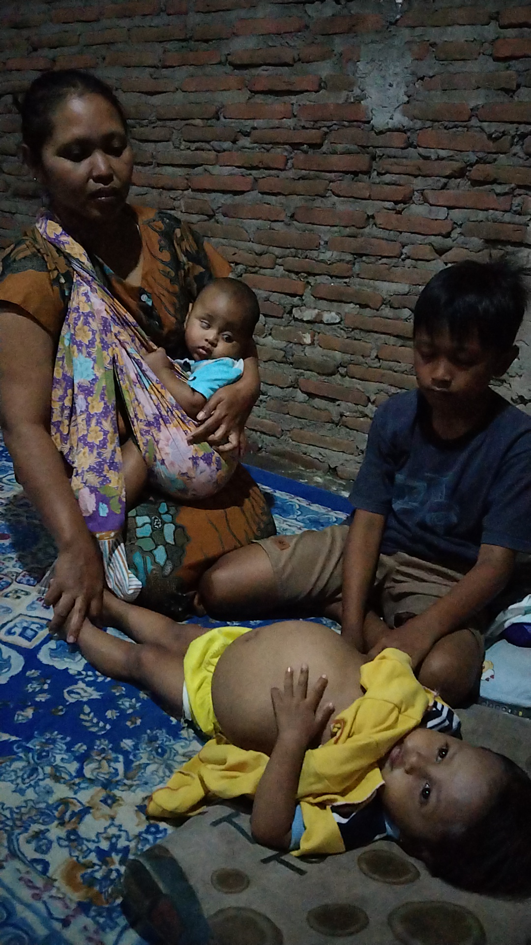 Prasetyo’s family consists of his mother and two younger siblings, Ayra (2 years old) and Ghufran (7 months old). Ayra suffers from a digestive disorder that causes her stomach to swell.