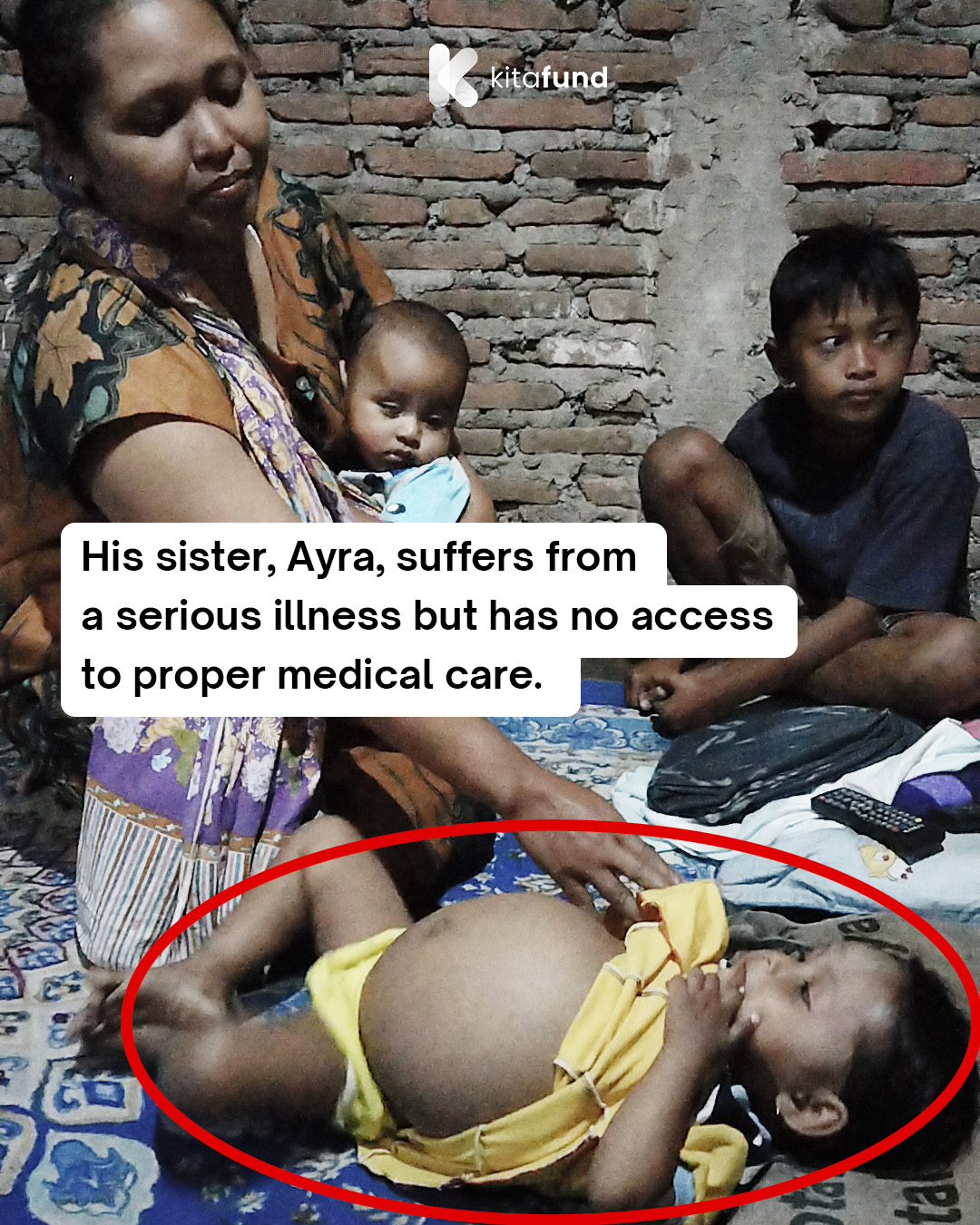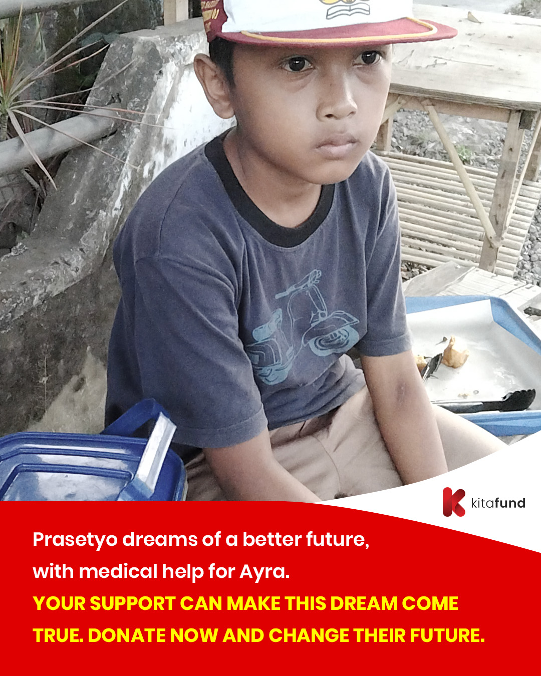 Prasetyo and his mother hope to gather enough funds to open a small shop so she can take care of her children while selling. They also hope for Ayra’s illness to be treated soon, and if they have enough income, they wish to take her to the hospital. They had once rented a shop, but after their father passed away, they could no longer afford it.