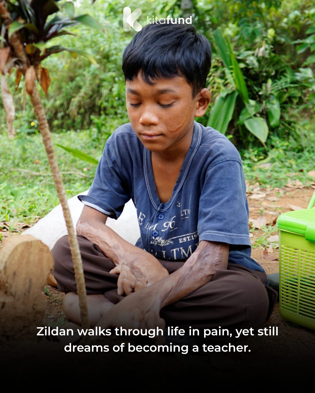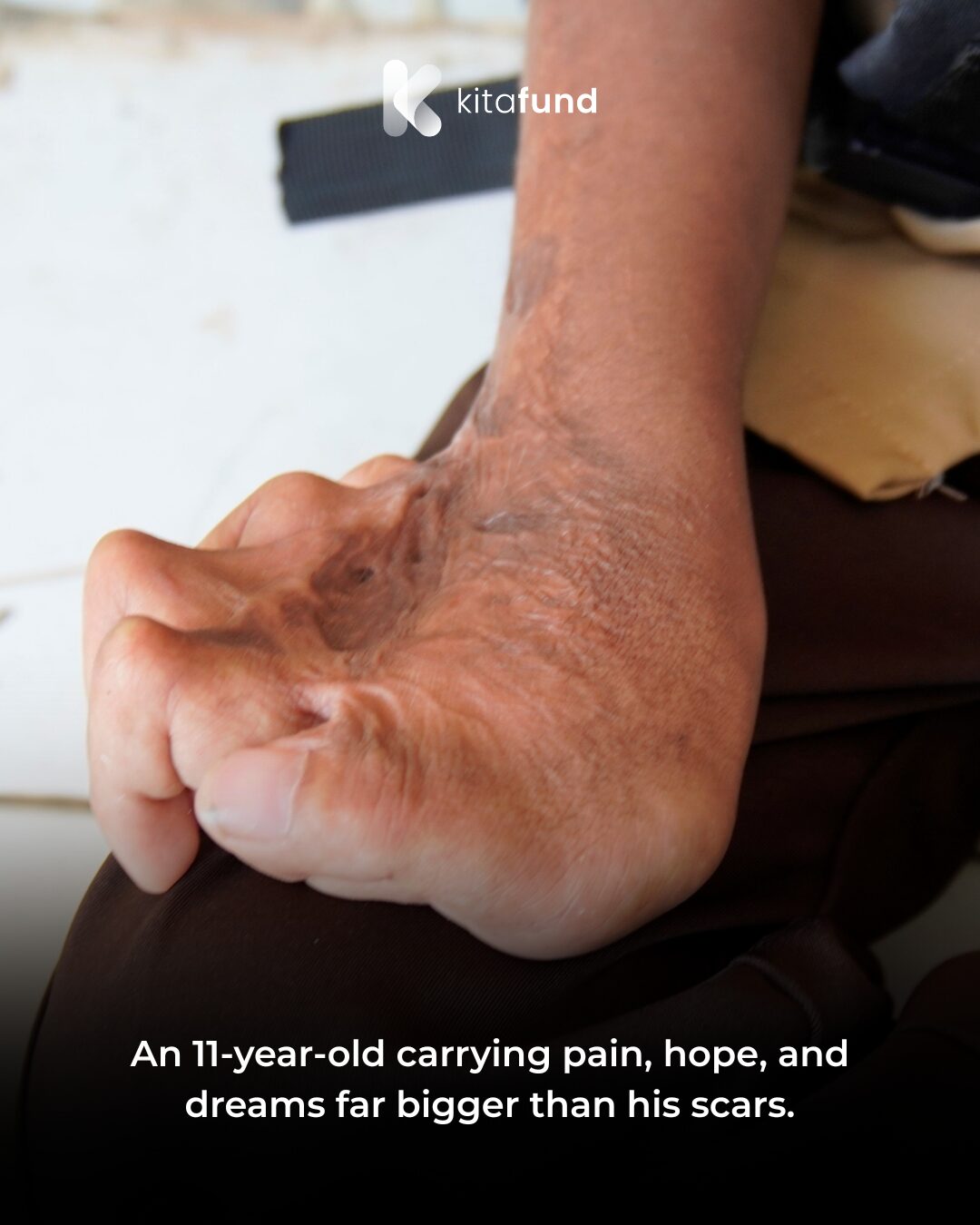 Zildan is only 11 years old, yet his life has been shaped by a tragedy he was too young to remember. When he was a toddler, a fire broke out at the place where his mother was working. In a desperate attempt to save him, she held him tightly and ran through the flames. Her bravery saved his life, but she did not survive. The fire left Zildan with severe burns on his hands and feet, causing permanent deformities that make walking difficult. Even wearing a simple pair of sandals is painful and almost impossible.